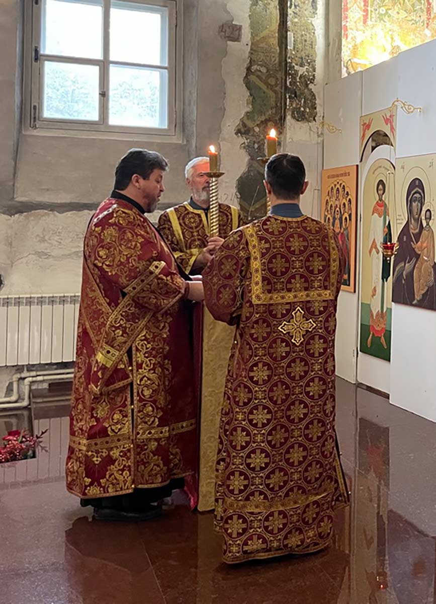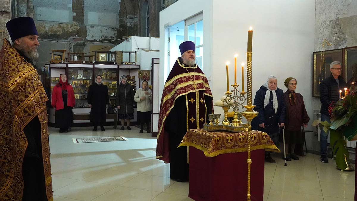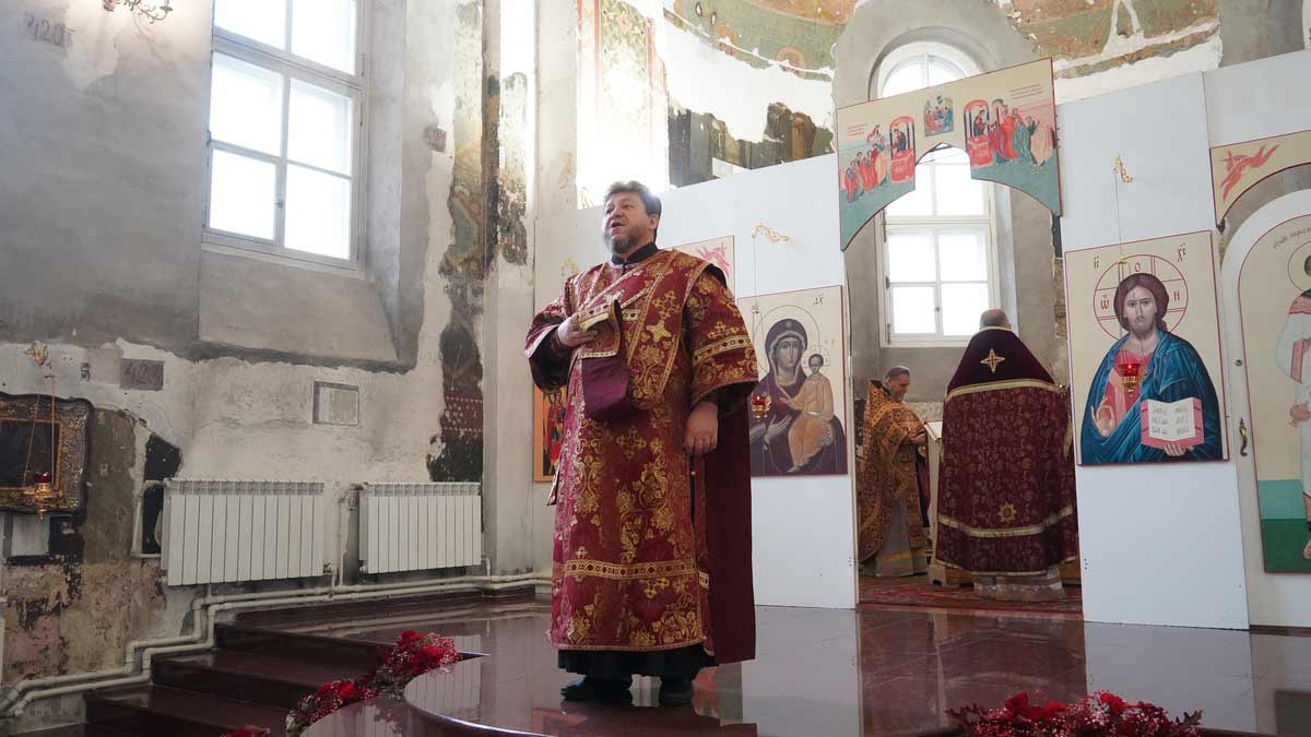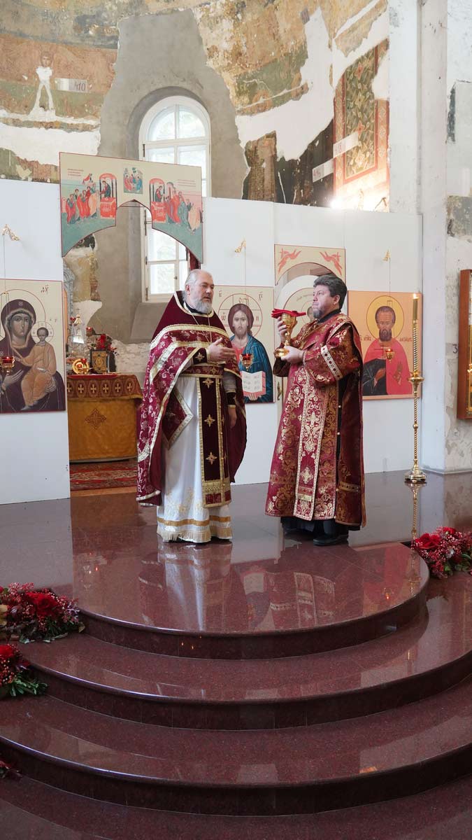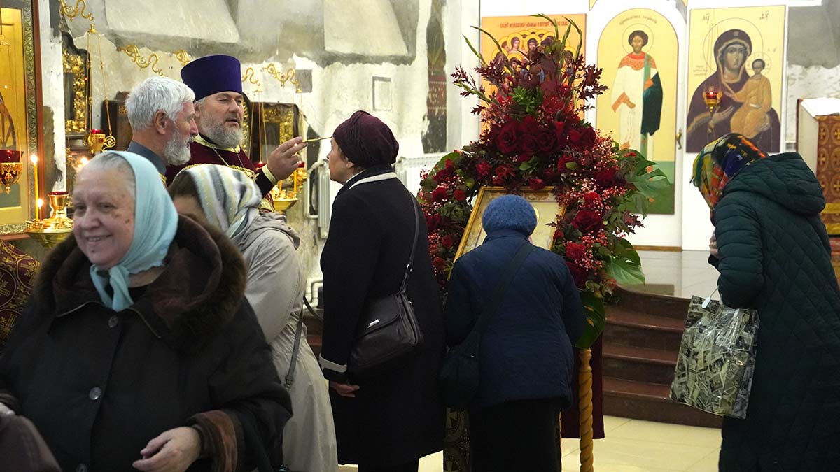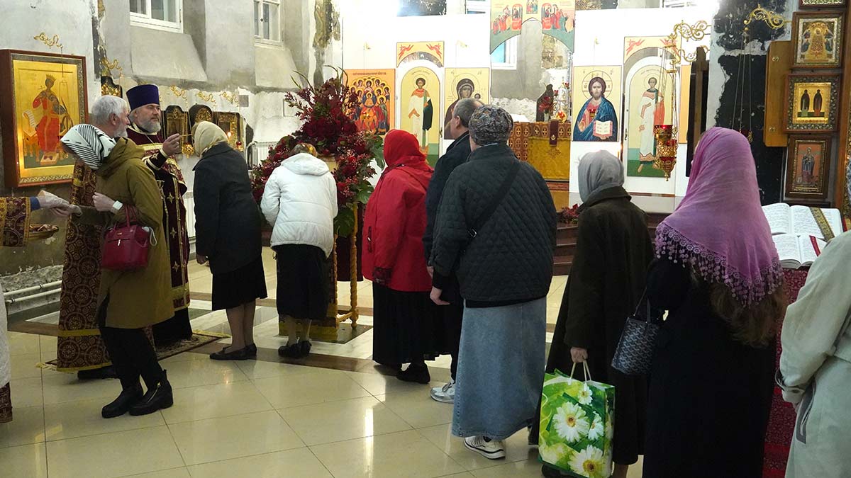 Литургию в день праздника также совершил настоятель храма в сослужении игумена Серафима (Кравченко) и священника Владимира Родионова. Диаконский чин возглавил протодиакон Николай Платонов, клирик Богоявленского кафедрального собора.
