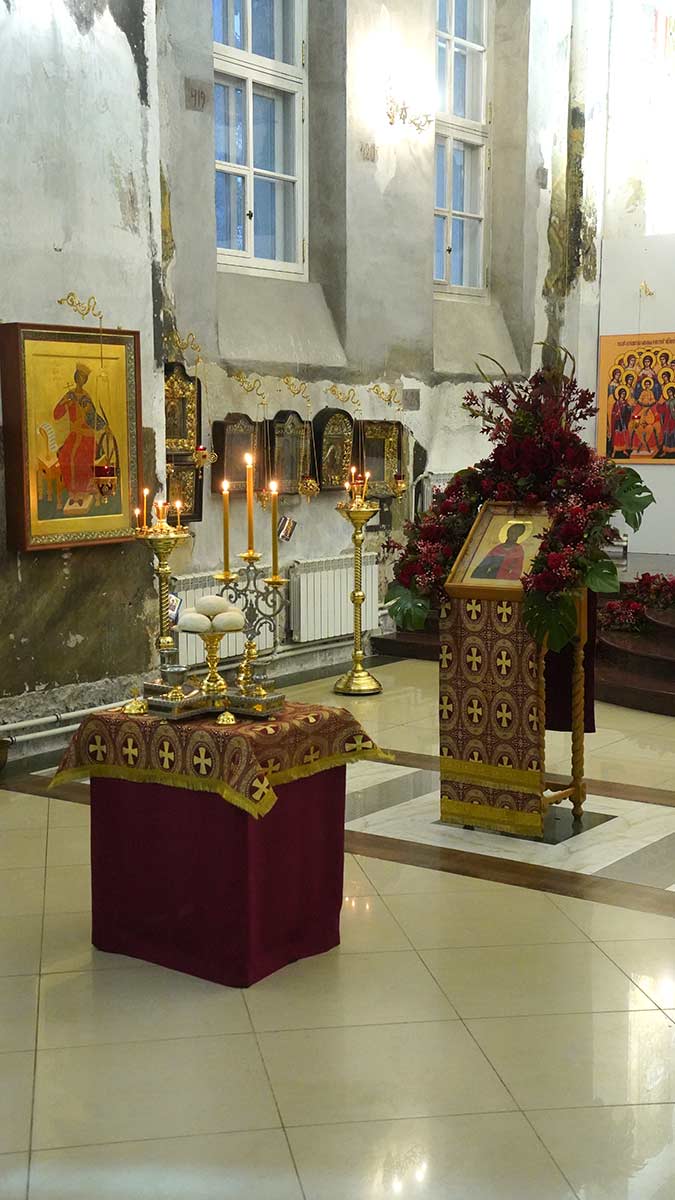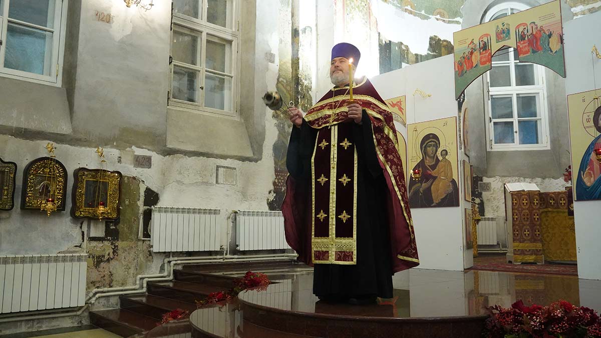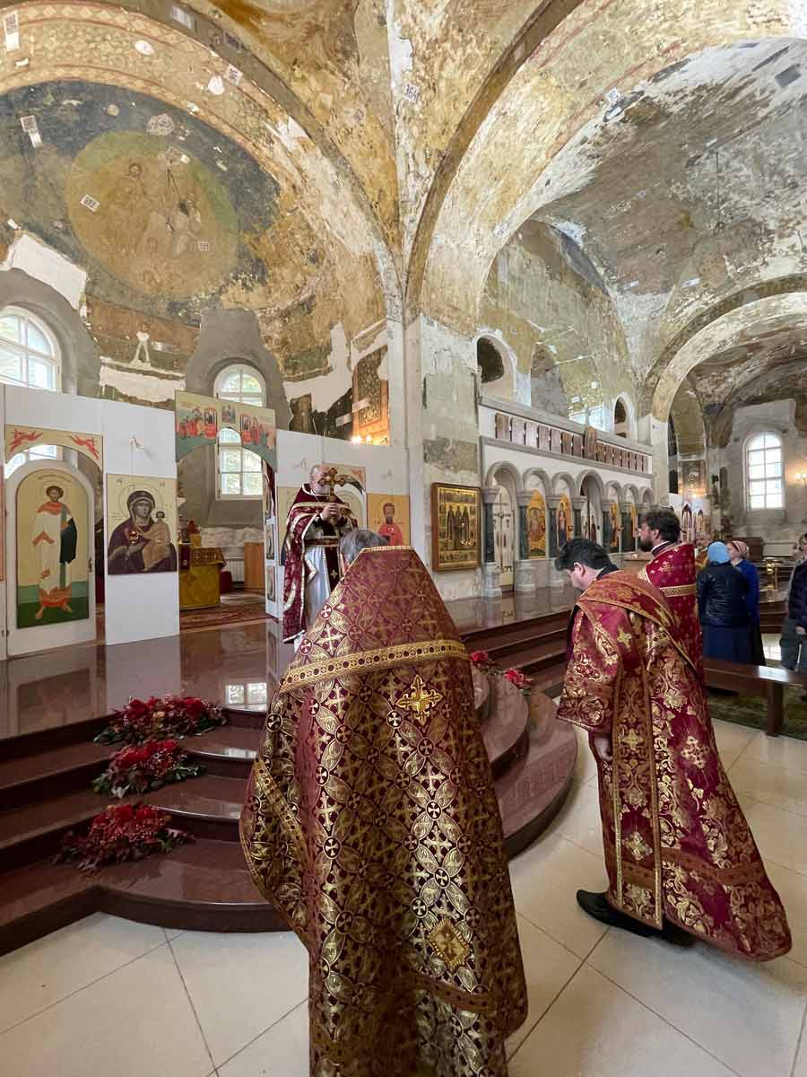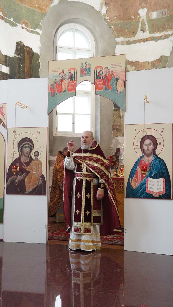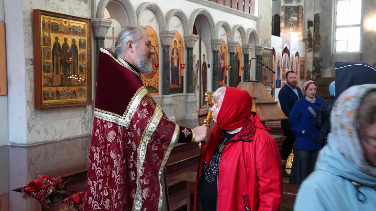 Литургию в день праздника также совершил настоятель храма в сослужении игумена Серафима (Кравченко) и священника Владимира Родионова. Диаконский чин возглавил протодиакон Николай Платонов, клирик Богоявленского кафедрального собора.
