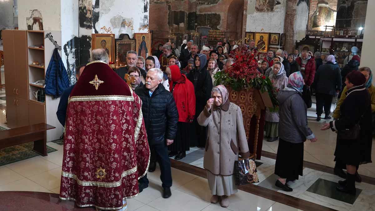 По окончании Литургии состоялся крестный ход и славление мученику Александру. Настоятель храма обратился к молящимся с пастырским словом.