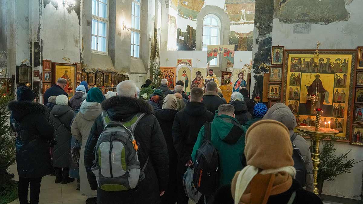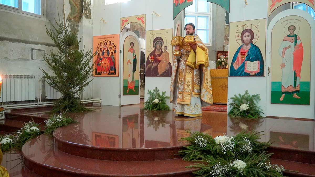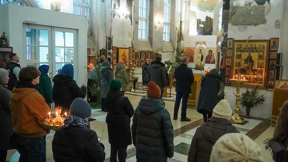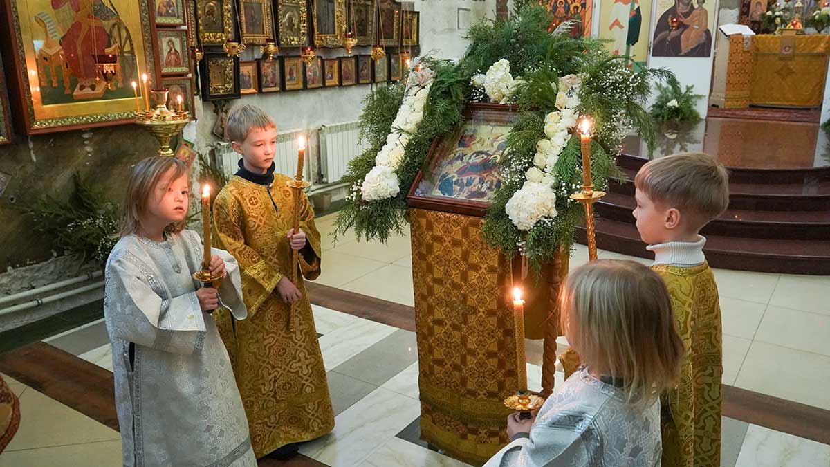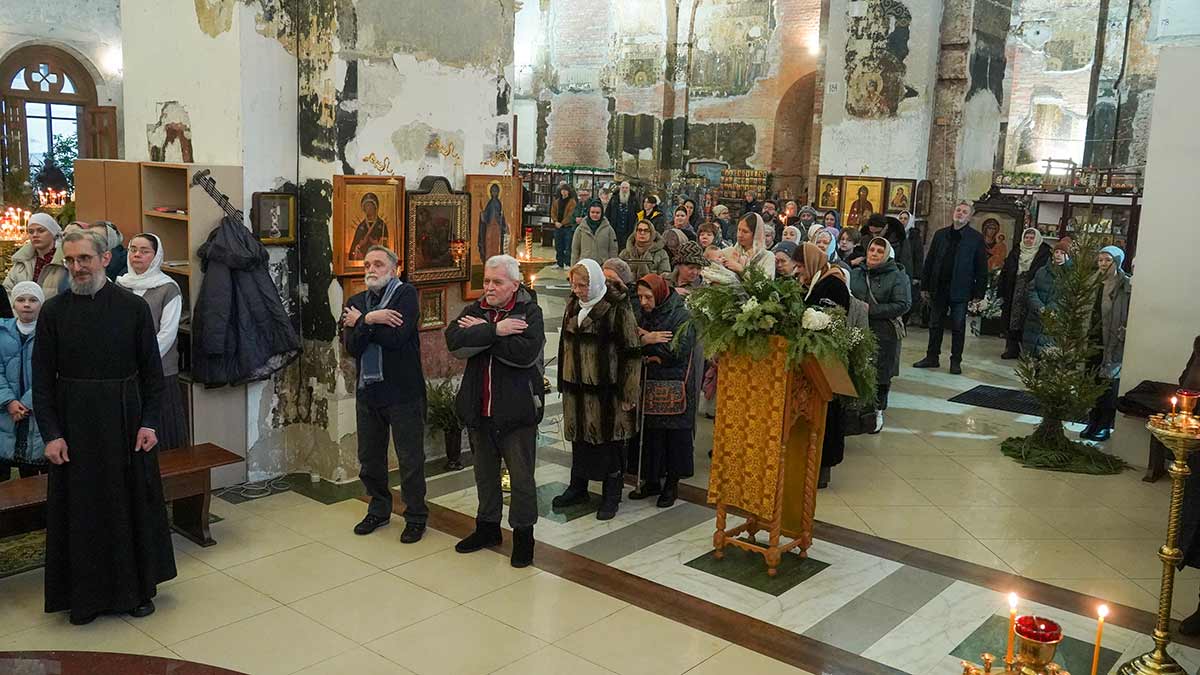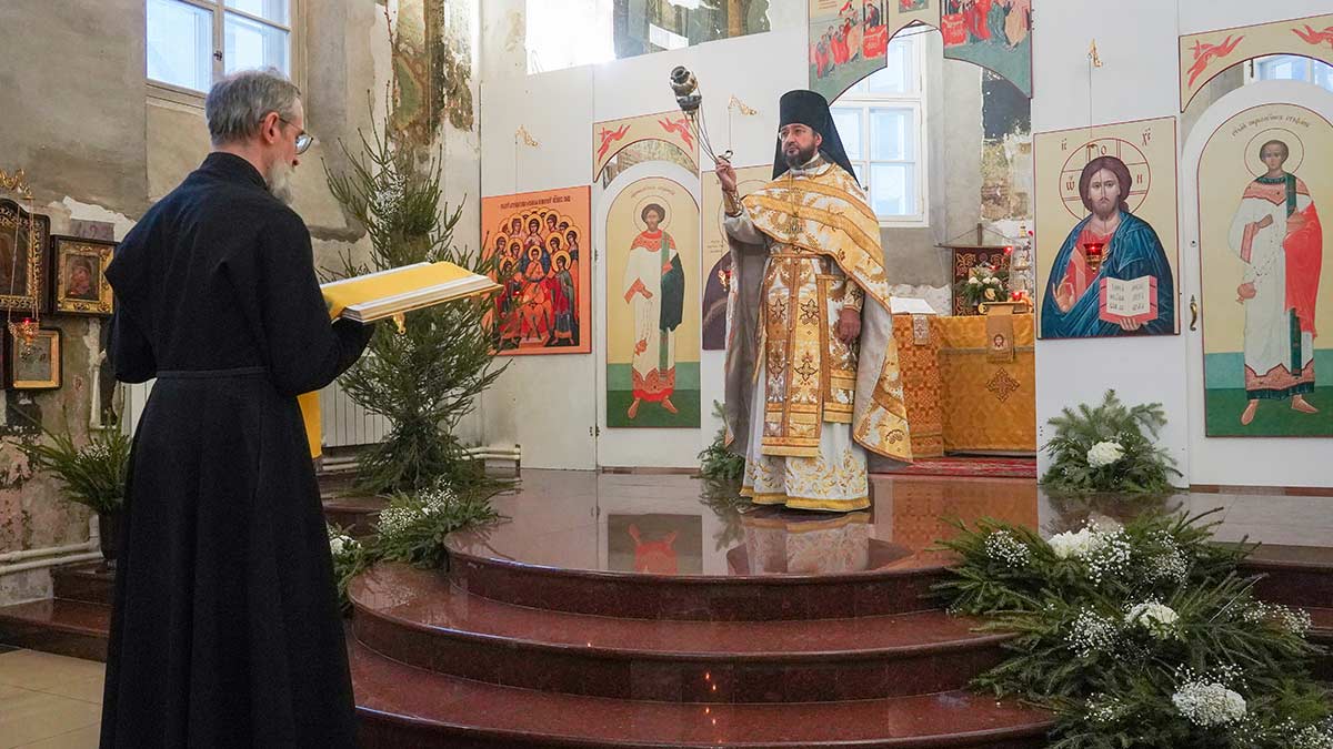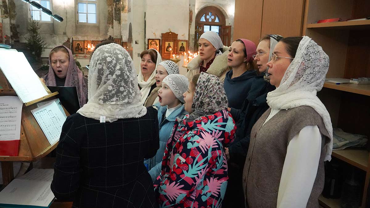 7 января 2026 года, в праздник Рождества Христова, поздняя Божественная литургия в храме прп. Василия Исповедника была очень необычной, светлой и трогательной. На клиросе пела хоровая группа учеников воскресной школы под управлением регента хора нашего храма Людмилы Ефимовой, среди алтарников тоже были дети. Богослужение совершил клирик храма игумен Серафим (Кравченко).