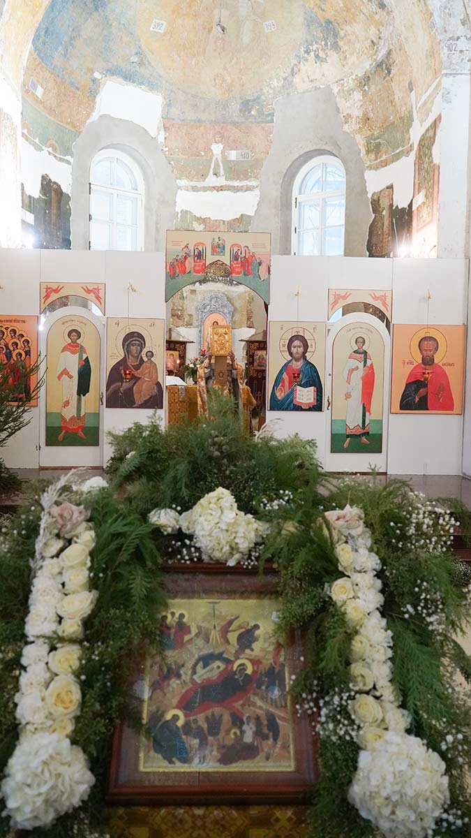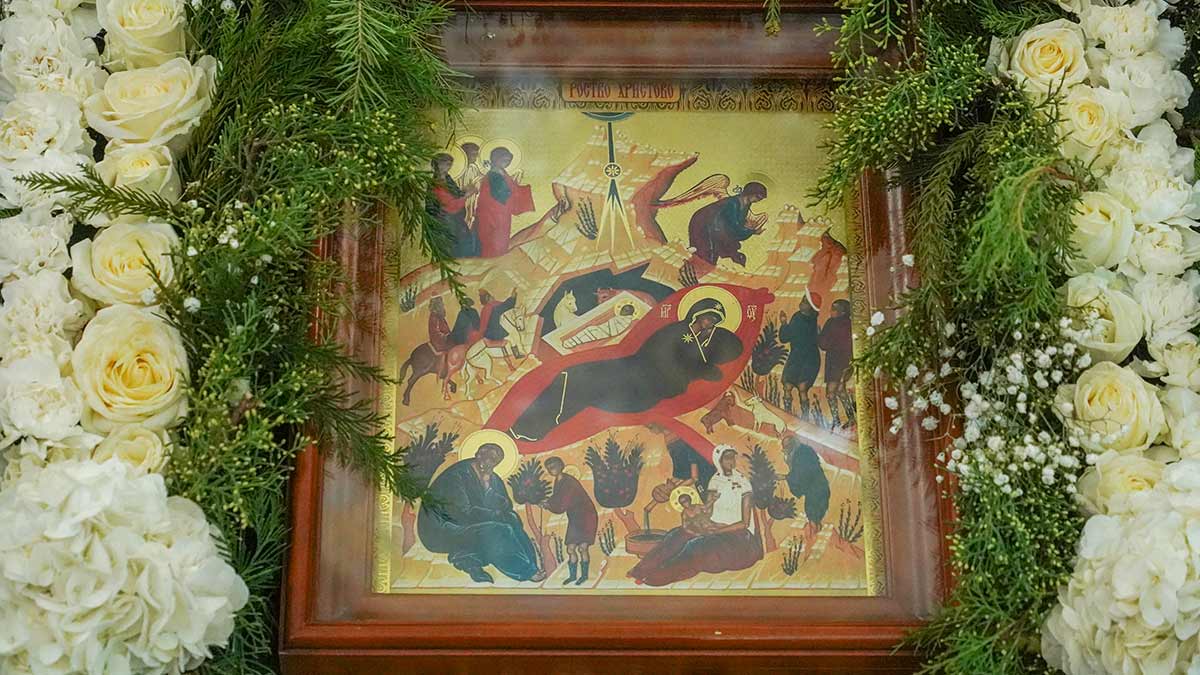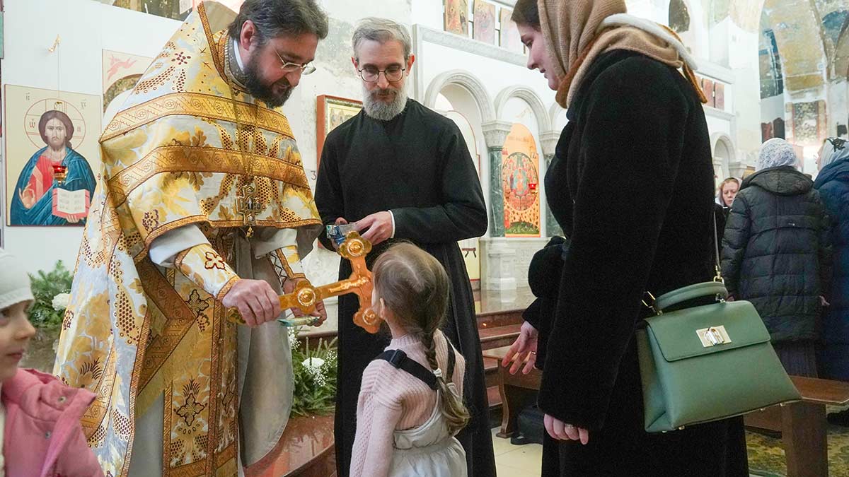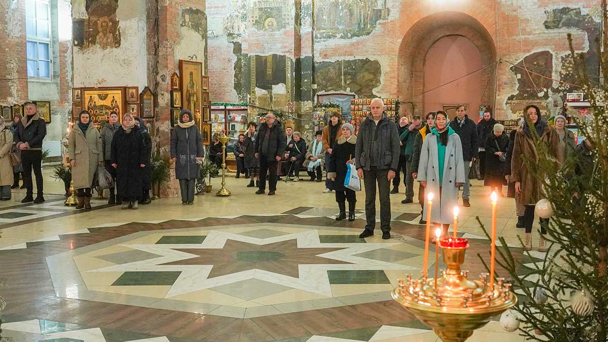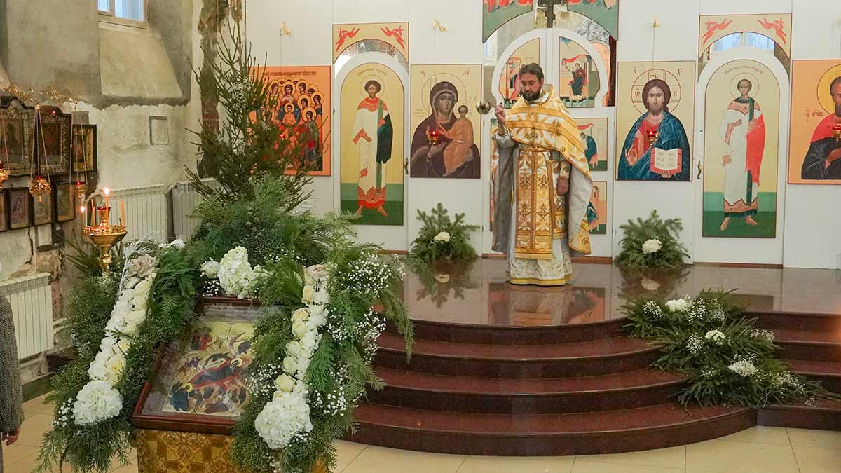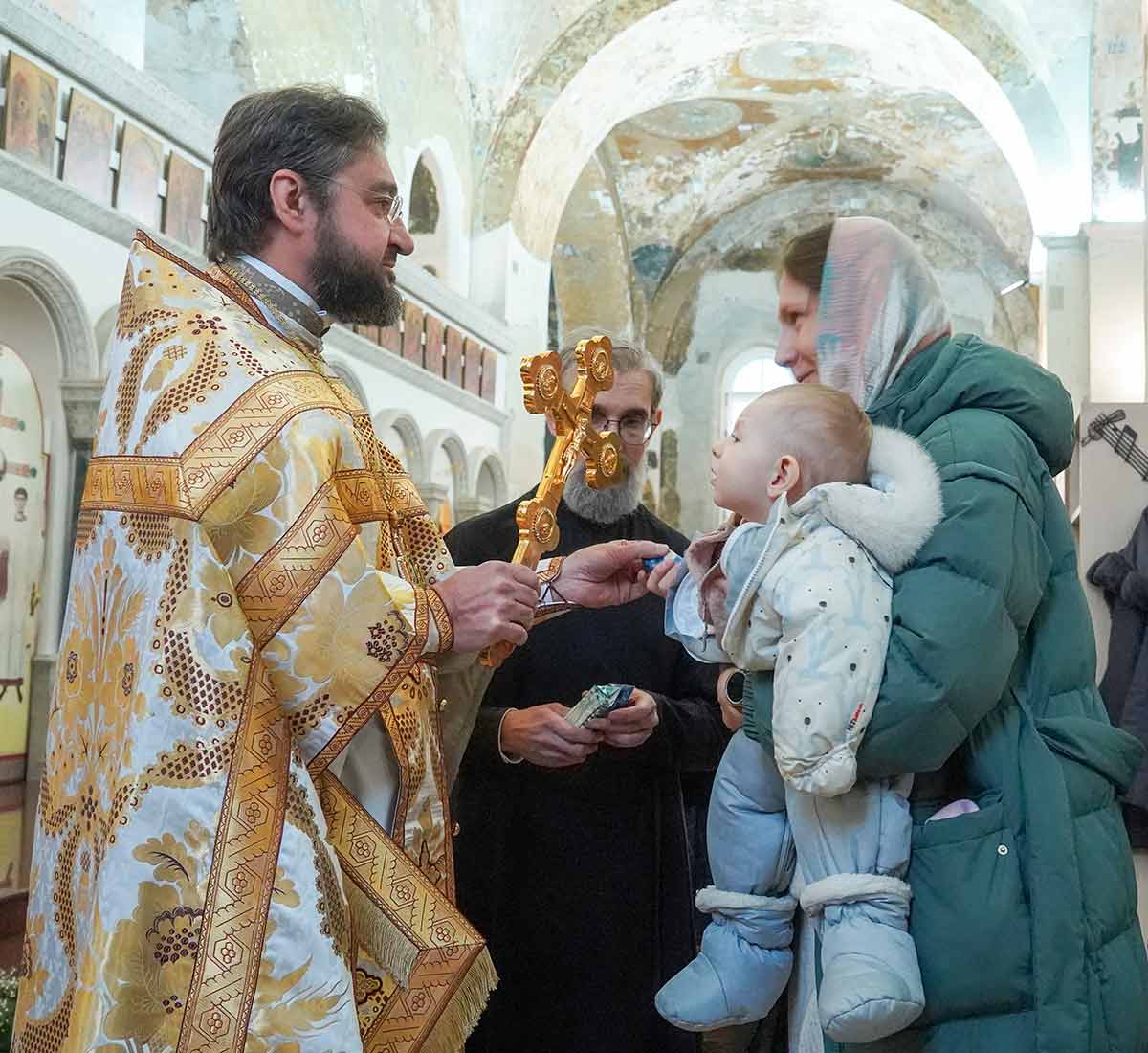 7 января 2026 года, в праздник Рождества Христова, поздняя Божественная литургия в храме прп. Василия Исповедника была очень необычной, светлой и трогательной. На клиросе пела хоровая группа учеников воскресной школы под управлением регента хора нашего храма Людмилы Ефимовой, среди алтарников тоже были дети. Богослужение совершил клирик храма игумен Серафим (Кравченко).